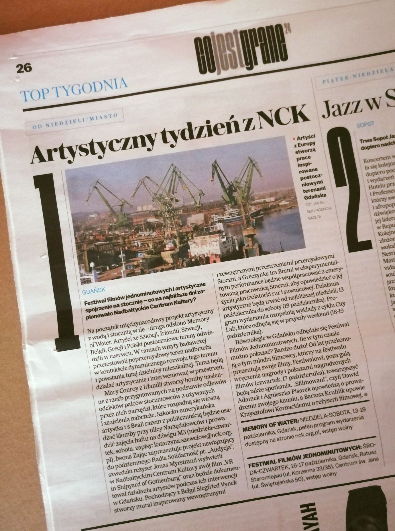 Memory of Water EU 2nd Artistic Residency in Gdansk, Poland 14-19 October.